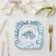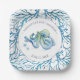 Platos personalizados para tu ducha de bebé con temática costera o fiesta de cumpleaños. Este diseño presenta un borde de coral con un pulpo acuarela y una estrella de mar en tonos azules. Utilice los campos de plantilla para personalizar con el nombre y la fecha de ducha de la futura mamá. Para ver la decoración de las fiestas temáticas de la playa, visita www.zazzle.com/dotellabelle