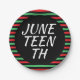 Celebración del 19 de junio planchas de papel de vacaciones con un borde de rayas rojas, negras y verdes. Tienen un fondo negro en el centro con el texto en blanco.