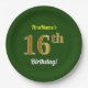 Plato De Papel Décimosexto cumpleaños del oro verde, falso +