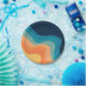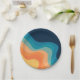 Olas de estilo retro ilustracion geométrico con rayas amarillas, naranjas, azules, azul marino y turquesa