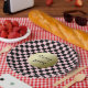 Plato De Papel Decoración fiesta de los cheques retro rosa negro
