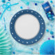 Azul azul azul azul celeste profundo con puntos de polka blanco en patrón circular. El centro es blanco sólido, rodeado de plata. Patrón geométrico divertido. Diseño original de TamiraZDesigns.
