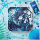 Burbujas azules y blancas oscuras vertebran pintura y células fluidas de arte digital.