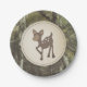Placas de papel para la ducha para bebés con un ilustracion de ciervo con fondo de camo.