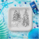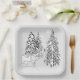 Plato De Papel Deer, invierno, bosque, árboles de Navidad, monocr