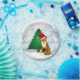 Aquí hay un divertido plato de invierno que presenta a un zorro en el bosque con un árbol de Navidad y nieve esponjosa. Puedes personalizar este plato con tu propio texto. Este plato sería perfecto para la fiesta de Navidad de los niños.