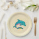 Plato De Papel Delfín verde Aqua curvado sobre agua arco iris