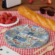 Plato De Papel Denim Patchwork Con Pollos Y Flores Silvestres