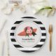 Este elegante plato de papel para bebés cuenta con un gran gorra rojo estilo derby con rosas y un arco/cinta negra sobre un fondo blanco con rayas negras. Personalice sus necesidades. Puedes encontrar más productos a juego en mi tienda.