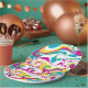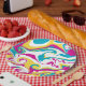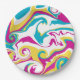Plato De Papel Derrame - Turquesa, Amarillo, Rosa y Blanco