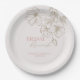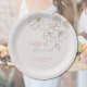 Platos de papel de tono rosa y dorado elegante para desayuno Brunch nupcial para despedida de soltera. Flores doradas minimalistas con letra elegante, personalizable según tus preferencias. Fondo de color neutro. Puedes encontrar otros productos para desayuno Brunch nupcial y despedida de soltera con este diseño en la Colección de Desayuno Brunch Nupcial y Despedida de Soltera de Flores Doradas Elegantes en la tienda The Gathering Designs.