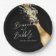 Elegante Desayuno Brunch Negro y Dorado y plato de papel personalizado Espumoso. Perfecto para tu fiesta de Despedida de Soltera con tema de Desayuno Brunch y Espumoso. Añade un toque festivo a tu día. Además, puedes personalizarlos con tu nombre y evento. Diseñado con una hermosa Botella de Champán Dorada a la acuarela. Artículos coincidentes en nuestra tienda Cava Party Design.