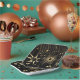 Un encantador y caprichoso diseño vacacional de Año Nuevo con una magia encantadora y estética etérea. Los diseños de esta colección son negros, con un elegante y sofisticado fondo en papel con texturas, rebosante de brillantes estrellas y detalles dorados: tarjetas de correspondencia, invitaciones y más —todo lo que necesitas para crear un fiesta hermoso e inolvidable.