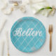 Plato De Papel Deslumbrante creencia luz azul y plateado bajo con