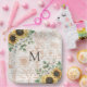Añada elegancia rústica a su mesa con nuestras placas de papel de girasol vintage. Personaliza tu monograma para un toque especial!