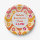 Esta es una placa de papel personalizable para fiesta de soltera floral retro groovy con flores retro muy lindas en olas abstractas groovy en rosa, naranja, amarillo y púrpura. Puedes cambiarla y hacerla tuya usando la plantilla personalizable.