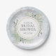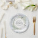 Con delicadas hojas de acuarela sobre un fondo de copos de nieve de invierno, estas elegantes platos de papel para despedida de soltera botánicos pueden ser personalizados con la información de su despedida de soltera especial. Diseñado por Thisisnotme©