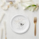 Agregue un toque encantador y único a su despedida de soltera “She's Tying the Knot” con estos elegantes platos de papel de lazo negro y dorado.