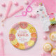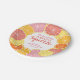 Frutas cítricas caprichosas en colores rosa, coral, naranja y toronja roja rubí. Las rodajas de cítricos dibujadas a mano incluyen una textura pintada con acuarela para agregar un toque jugoso a un plato de papel colorido para la ducha de la novia.