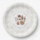 Agregue un toque de encanto fresco a su despedida de soltera con este plato temático de mercado de agricultores rústicos de Redwood & Vine Design Co. Con una suave orla de gingham bronceado y colorido producto de acuarela, este diseño es perfecto para despedidas de soltera en la cocina, reuniones en el jardín o celebraciones inspiradas en la casa de campo. Ideal para una novia que está oficialmente “fuera del mercado."