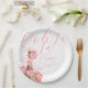 Platos de papel Despedida de soltera Ooh La La París con flores rosadas, torre Eiffel y letras de caligrafía a mano.