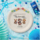¡Celebra la próxima llegada de tu pequeño con nuestro vibrante y cautivador plato de Baby Shower inspirado en Alebrije! Este diseño único y artístico es una verdadera fiesta para los ojos, que mezcla el encanto de las alebrijes mexicanas con el exuberante espíritu de una fiesta. En el corazón de este plato encontramos tres osos encantadores, cada uno de ellos diseñado de manera intrincada al estilo de las alebrijes tradicionales mexicanas. Estos osos son una ráfaga de color y creatividad, adornados con motivos intrincados, tonos vivos y expresiones animadas. Traen un toque de arte folclórico mexicano a tu celebración, simbolizando la alegría y la emoción de dar la bienvenida a tu pequeño. Desde la parte superior de la servilleta, un dinámico y colorido cartel de fiesta marca la pauta para la celebración de la ducha de bebé. Con banderas de papel picado en una mezcla de formas y patrones, agrega un toque festivo que promete una reunión inolvidable de estilo fiesta. Las palabras "Baby Shower Fiesta!" en letra lúdica anuncian la alegre ocasión.