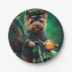Un amigo peludo detrás de las manillares de una brillante bicicleta verde, usando un traje verde del Día del San Patricio que hace que las cabezas se vuelvan. El perro está vestido con un conjunto festivo, con una corbata verde de arco y un sombrero superior a juego que se sienta cómodos sobre su cabeza. El conjunto presenta un diseño intrincado de rocas de champú y leprechauns, lo que deja claro que este perro está listo para celebrar el Día de San Patricio con estilo.
