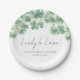 Plato de fiesta de despedida de soltera del Día de San Patricio Lucky in Love. Celebre a la futura novia con este diseño festivo y encantador, perfecto para una fiesta de despedida de soltera del Día de San Patricio. El plato presenta tréboles o shamrocks de acuarela vibrantes en la parte superior en una mezcla de tonos verdes frescos, lo que añade un toque animado y elegante.