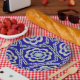 Plato De Papel Diamante Kaleidoscopio Blanco Azul Seamless