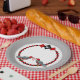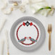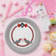 Estas divertidas placas de papel presentan el diseño original de Leslie Sigal Javorek que comienza con un patrón retro de diamantes rojo y negro de los años 50, diseminado en un círculo; en el fondo hay un par de aves de tejidos rojos y grises que se enfrentan entre sí mientras mastican un par de gusanos rojos cómicos, formando un corazón. Topping it off es un campo personalizado para su monograma!