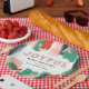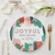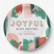 Plato De Papel Dibujo abstracto moderno rojo, rosa + verde alegre