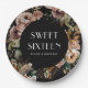 Plato De Papel Dieciséis y Floral Negro | Cumpleaños Elegante