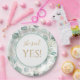 ¡Ella dijo SÍ! ¡Celebremos a la futura novia con estos hermosos platos de papel de oro y eucalipto!