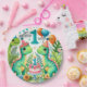 Celebre el hito de su pequeña persona con este adorable primer cumpleaños de placas de papel Fiesta de dinosaurios, con un encantador diseño de dinosaurios acuarelas. Perfecto para un niño de cumpleaños amante de los dinos, los platos de papel muestran hermosas criaturas prehistóricas, exuberante vegetación y alegres colores pastel, creando un tema divertido y caprichoso. Personalizar con los detalles de su fiesta para un toque único. Ideal para un primer cumpleaños con temática de dinosaurio, ¡esas placas de papel marcan el tono para un momento ruidoso! Disponible exclusivamente en Zazzle.