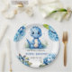 Plato De Papel Dinosaurio azul lindo con Florals Boy Baby Shower