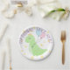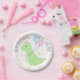Un dinosaurio lindo con una corona y globos festivos, todo en suaves colores pastel. Personalizar a su gusto.