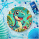 Plato De Papel Dinosaurio Personalizado Adorable en medio de vibr
