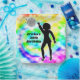 Un plato fresco con fondo de tintes de corbata y una silueta de mujer disco con un texto personalizado. Ideal para cualquier fiesta de cumpleaños de edad.