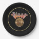 Juego de ocho placas de papel de 9" con una imagen de una deslumbrante bola disco espejo y "Disco" en letras tubulares rosadas y amarillas sobre negro con un borde dorado. Ver toda la colección Disco 70 Plate en la FOOD/BEV | Sección de platos.