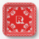 Plato De Papel Diseño de andana roja y blanca con monograma
