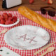Diseño de mármol de oro rosa de moda plantilla de monograma elegante moderno clásico plato de papel redondo.