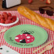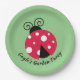 Ladybug con White Dots Design Paper Plates con texto de personalizable y color de fondo.