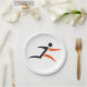 Un símbolo de icono negro y naranja de una persona en ejecución. Este diseño parece realmente efectivo en estas placas de papel