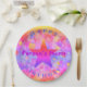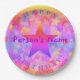 Platos de fiesta de cumpleaños con amarillo, naranja, rosa, morado y otros colores, estrellas y burbujas, el nombre de su hijo y las palabras ¡Feliz cumpleaños! Las tazas de coordenadas y las servilletas se venden por separado. Diseñado por HAMbyWhiteGlove. alias HAMbyWG.