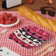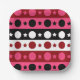 Plato De Papel Diseño de rayas de círculo blanco rosado