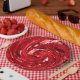 Un hermoso diseño de remolino blanco rojo negro en un patrón único que atrae la atención.
