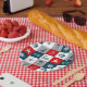 Diseño de temática náutica con decoración marina y acuática en cuadrados blancos, rojos, azules y grises impecables