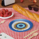 Placa de papel Diseño de ojos griegos. Puede personalizar esta placa de papel con su lugar griego favorito o cualquier otro texto de su elección. Si necesita ayuda para personalizar, póngase en contacto con nosotros a través del enlace de esta página. Placa personalizada de papel de diseño griego