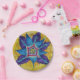 Diseño pintado a mano con manala azul, violeta y amarilla.