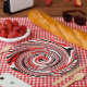 Plato De Papel Diseño psicodélico rojo blanco y negro